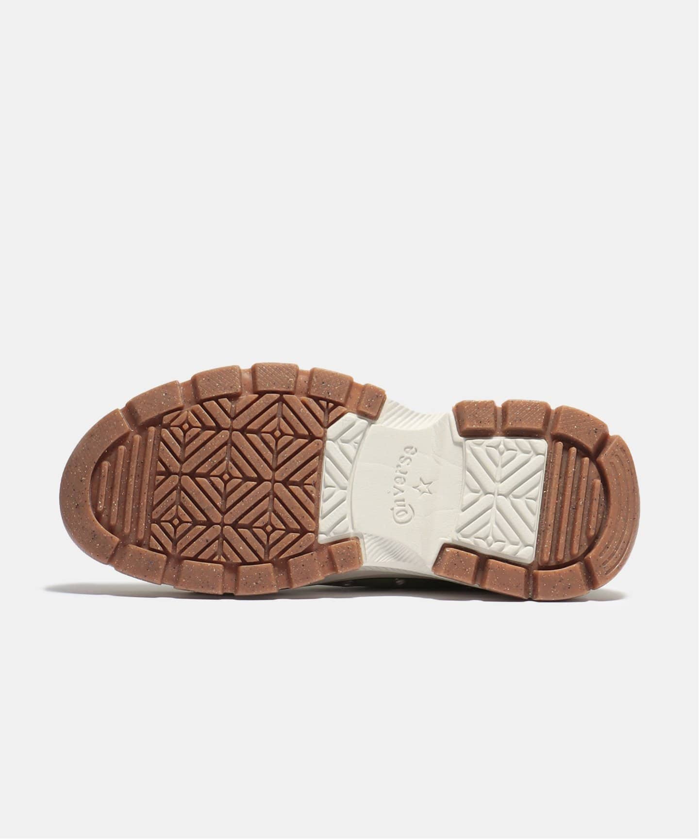 オールスターの定番スタイルに、トレッキングシューズを思わせるボリューム感あふれるアウトソールを融合させたデザインが目を引きます。