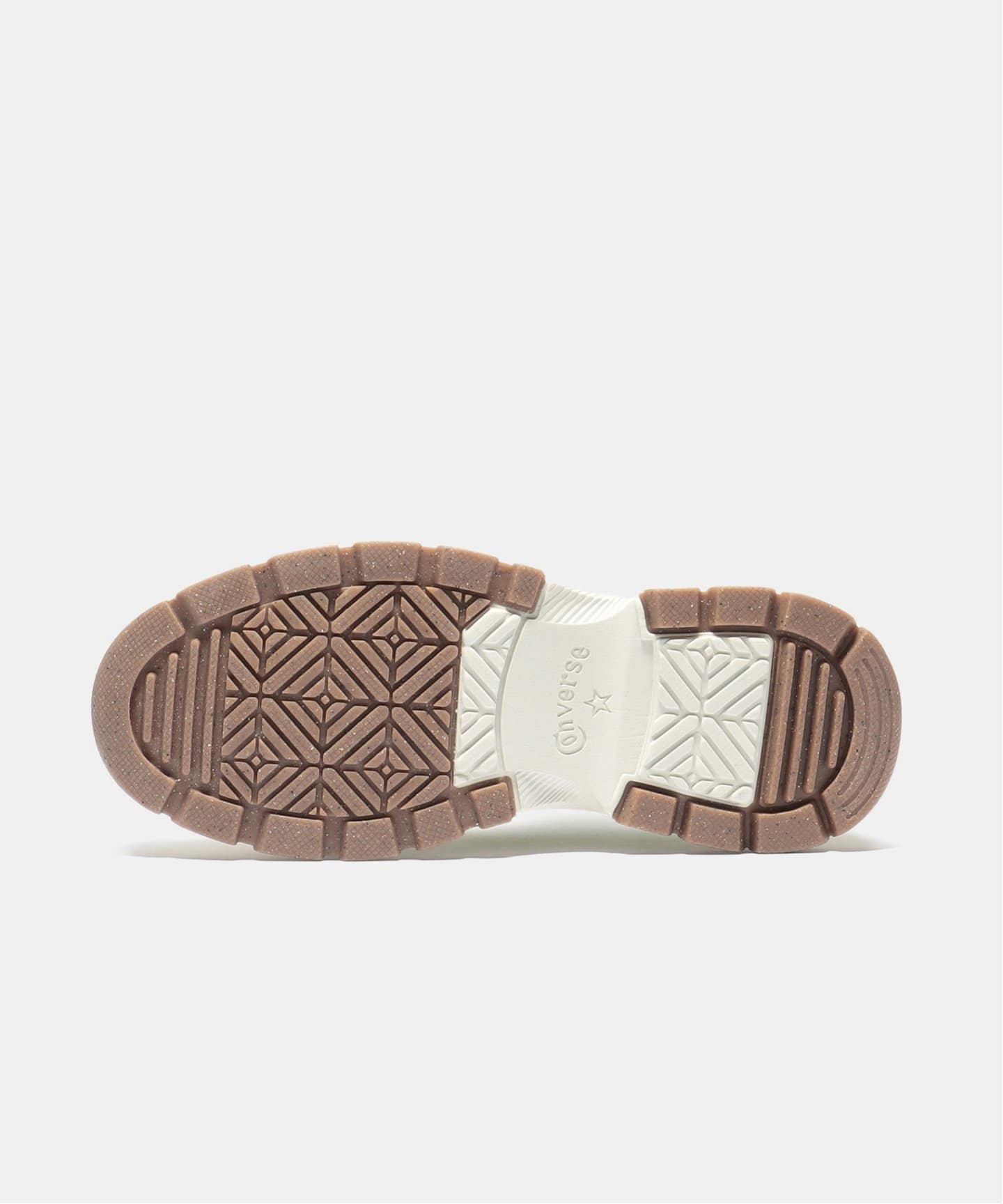 オールスターの定番スタイルに、トレッキングシューズを思わせるボリューム感あふれるアウトソールを融合させたデザインが目を引きます。