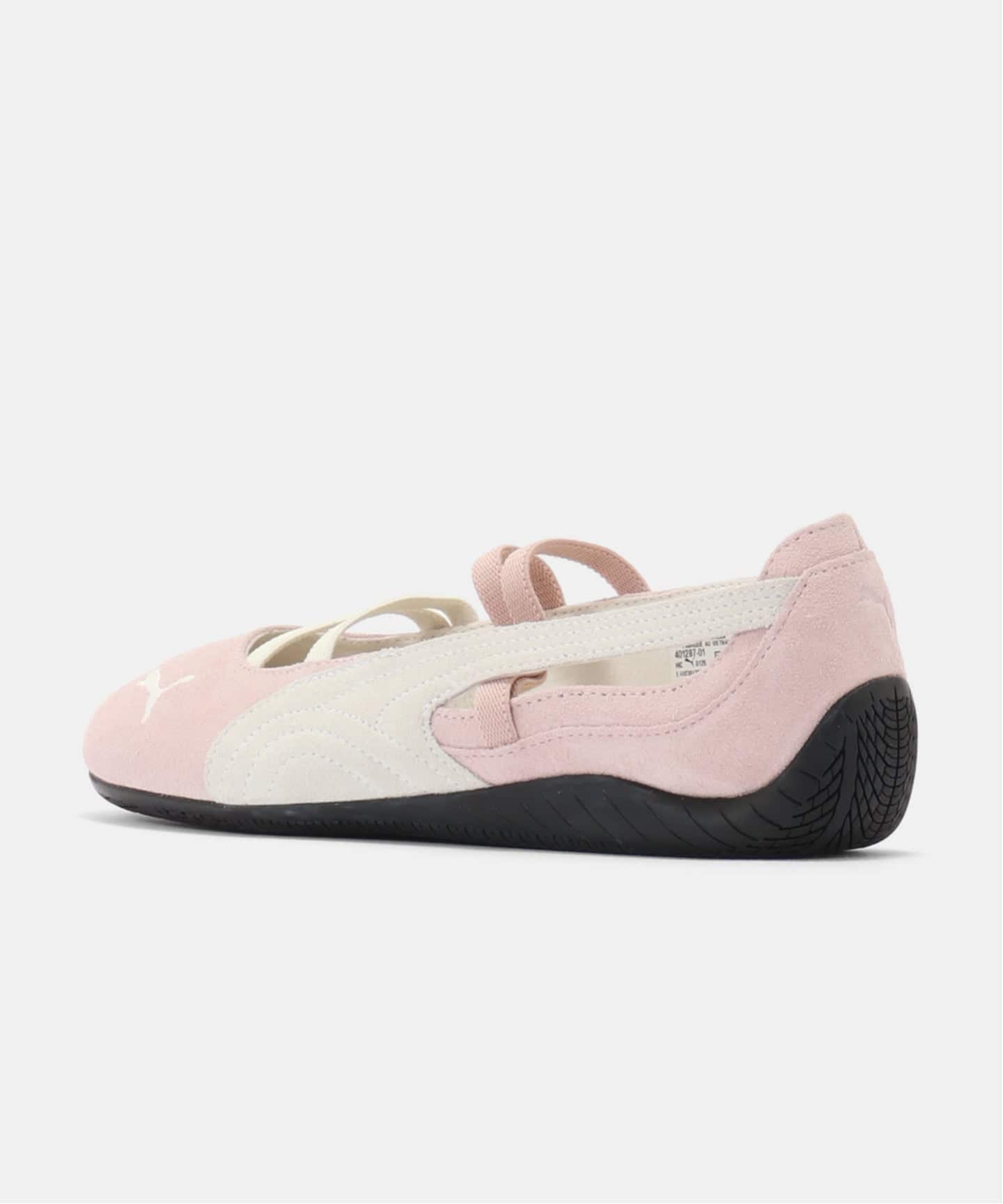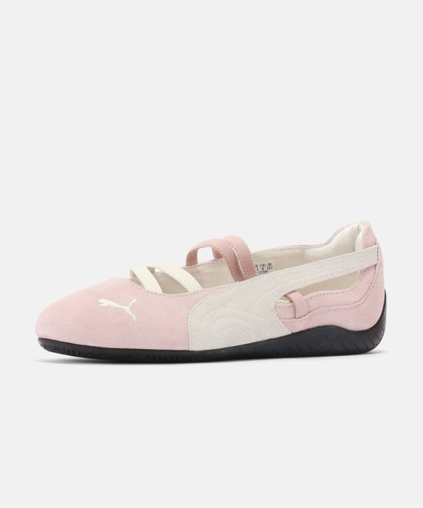 バレエからインスパイアされたエレガンスさと元来のレーシングDNAを融合させたスピードキャットバレエは、スウェードのアッパー、刺繍のプーマキャット、ぴったりとフィットするゴムバンドが特徴です。