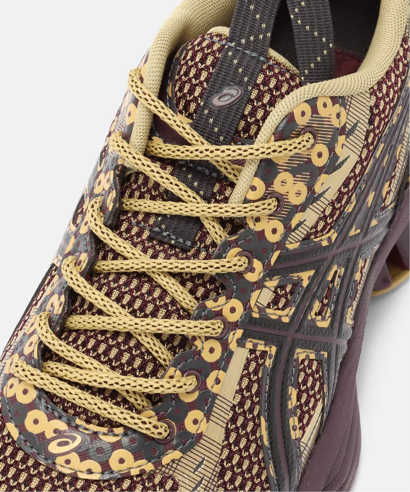 US7-S GEL-KINETIC FLUENTは、温かみのある色彩と質感あるパターンを特徴とする過去に廃刊となったインテリア雑誌のページから着想を得ています。アッパー構造には2010年代ランニングシューズに見られるテクニカルな溶接による意匠とアイレットを採用。現代的な素材が深みと質感をデザインに付加しています。ミッドソールにはFF BLAST PLUSによるクッションとスクートイドGELテクノロジーを採用。快適性を高めるため、衝撃緩衝性に優れた構造設計になっています。
